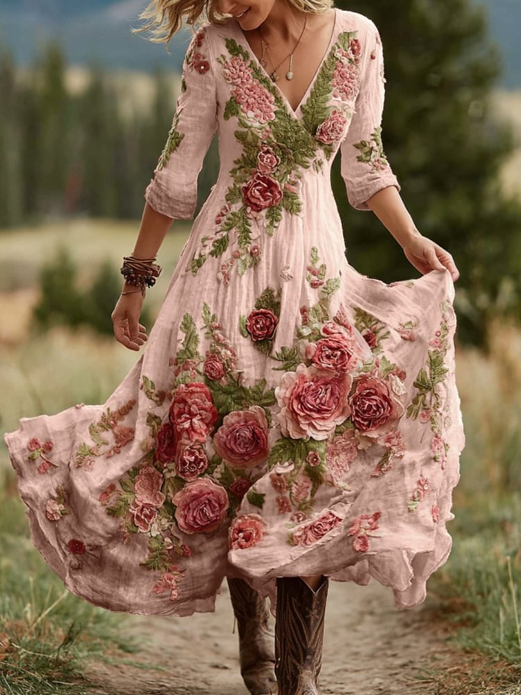 Vintage Elegant Long Dress With Floral And Botanical Print